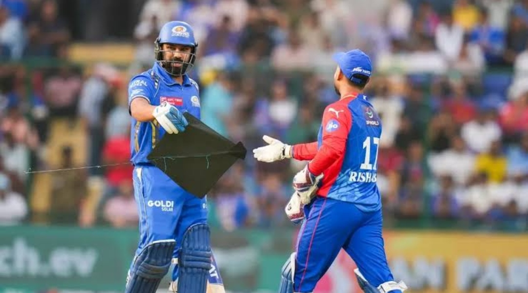 During the match between Mumbai Indians and Delhi Capitals on Saturday, a kite fell onto the center of the ground as Mumbai Indians began their chase of Delhi Capitals’ huge score of 257 for 4.